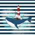 Der Walleuchtturm kommt hier vor blau-weißen Kombistreifen auf hochwertigem Bio-Jersey.